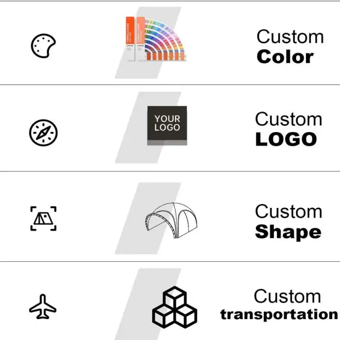 The dimensions of the tent can be customized, including height, length, and width, based on your specific needs.