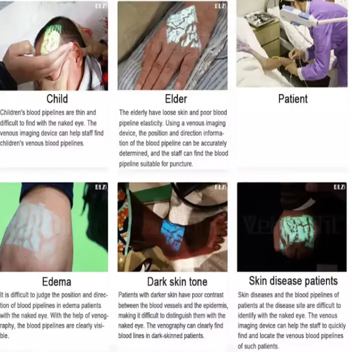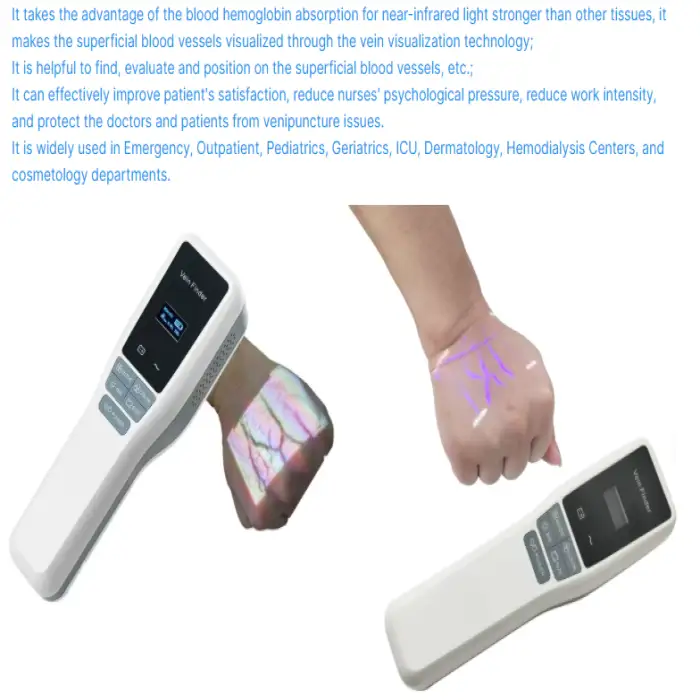 By accurately locating veins, the device reduces the number of attempts needed for venipuncture, thereby minimizing discomfort and anxiety for the patient.
