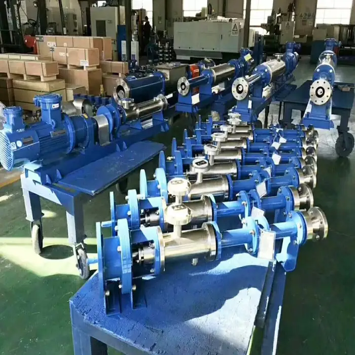 The pump features a screw pump structure, which is effective for moving viscous materials.