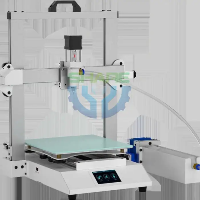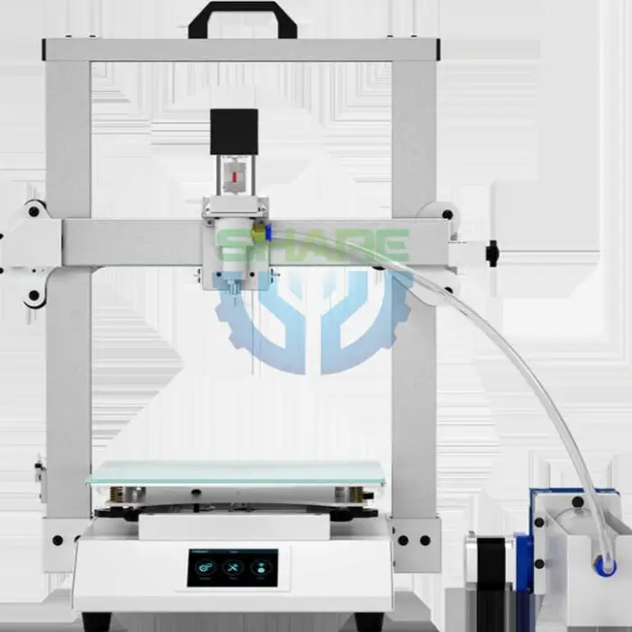 Key features include multi-axis printing for detailed designs, a heated bed for better adhesion, a dual extruder for multiple materials, and a resume printing feature in case of interruptions.