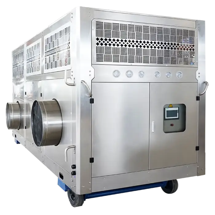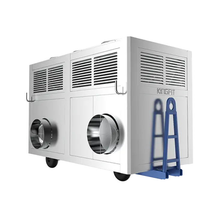 Regular maintenance includes checking and cleaning the filters, ensuring the fan and compressor are functioning properly, and inspecting for any signs of wear.