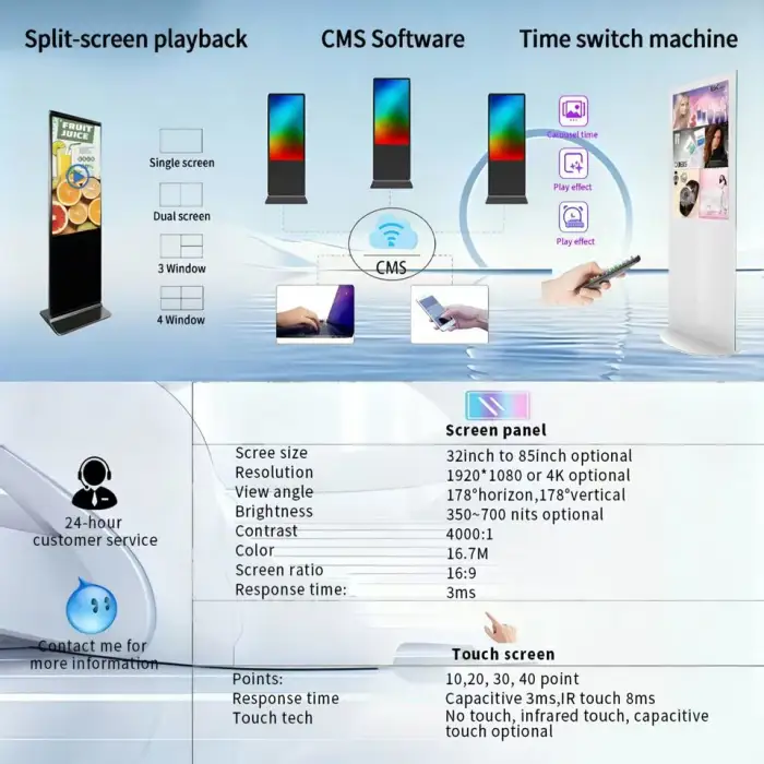 This display is ideal for retail stores, restaurant menus, wayfinding in malls and airports, self-service kiosks, exhibition halls, and welcome displays in hotels and events.