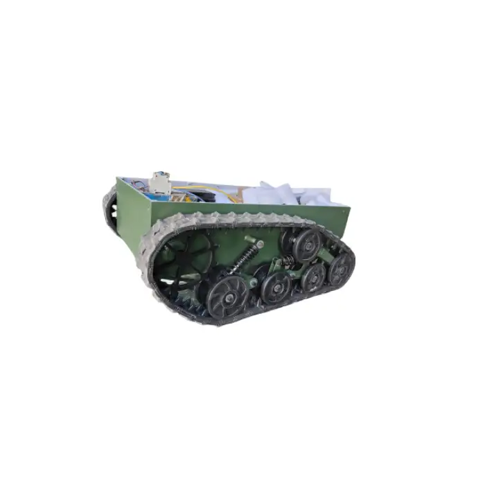 The chassis includes a remote-control system for easy operation. Specific remote range and control functions (e.g., speed control, steering modes) are not listed in the supplied specs — contact the seller for full remote-function details.