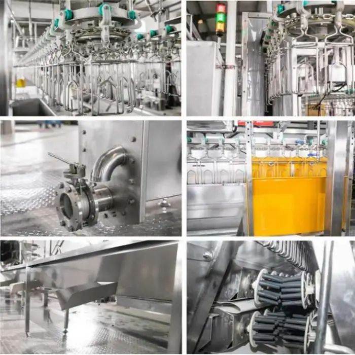 The Chicken Slaughtering Machine Line is made from high-quality stainless steel, ensuring durability and longevity in a commercial environment.