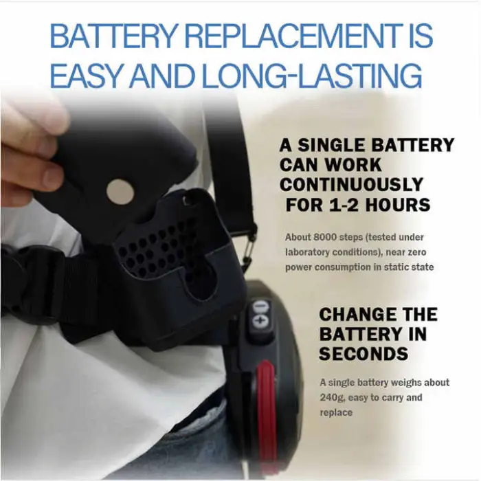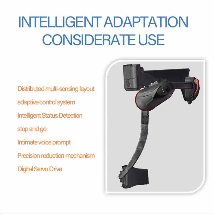 A lightweight lower-limb exoskeleton designed to provide walking and stair-climbing assistance for people with mobility challenges. It is intended for use in physical therapy, rehabilitation clinics and supervised home programs to help users regain strength, balance and confidence while walking.