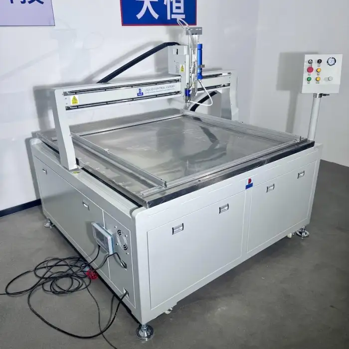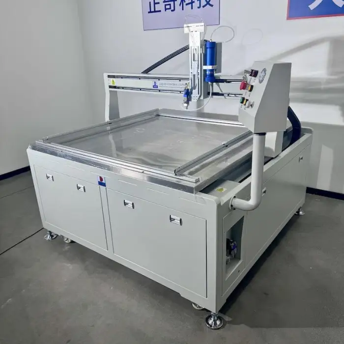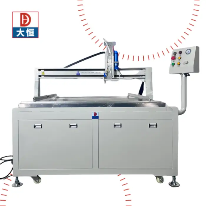 This machine is designed to dispense silicone, epoxy, and PU glue with precision, making it suitable for a variety of industrial applications.
