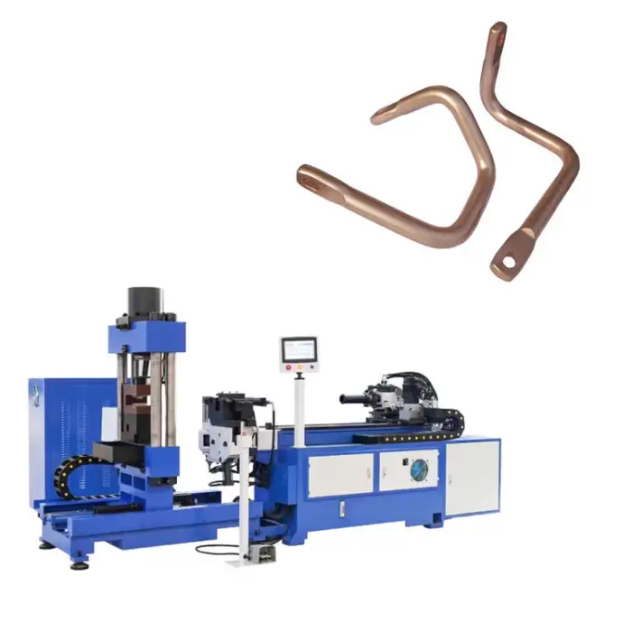 The CNC Electrical Copper Rod Busbars Cutting Punching Bending Machine is colored blue.