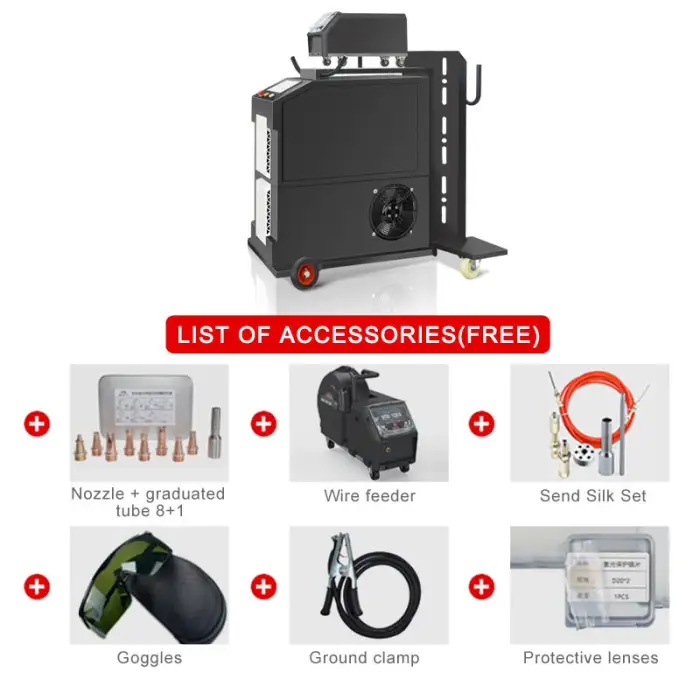 This machine uses a fiber laser, which is known for its efficiency and precision in metal welding.
