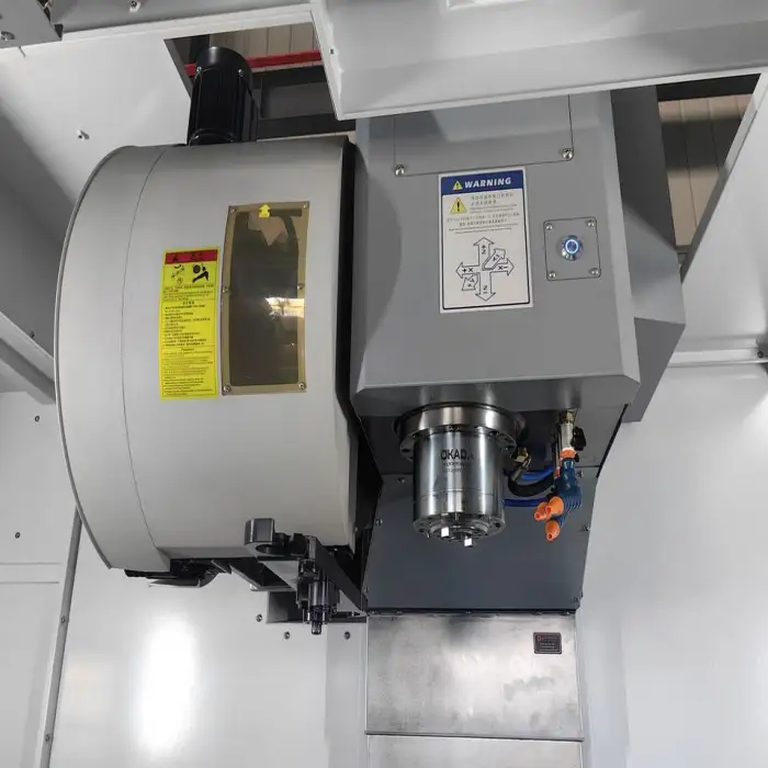 This CNC machine can work with various materials typically used in large part manufacturing, including metals, plastic, and composites, depending on the tooling used.