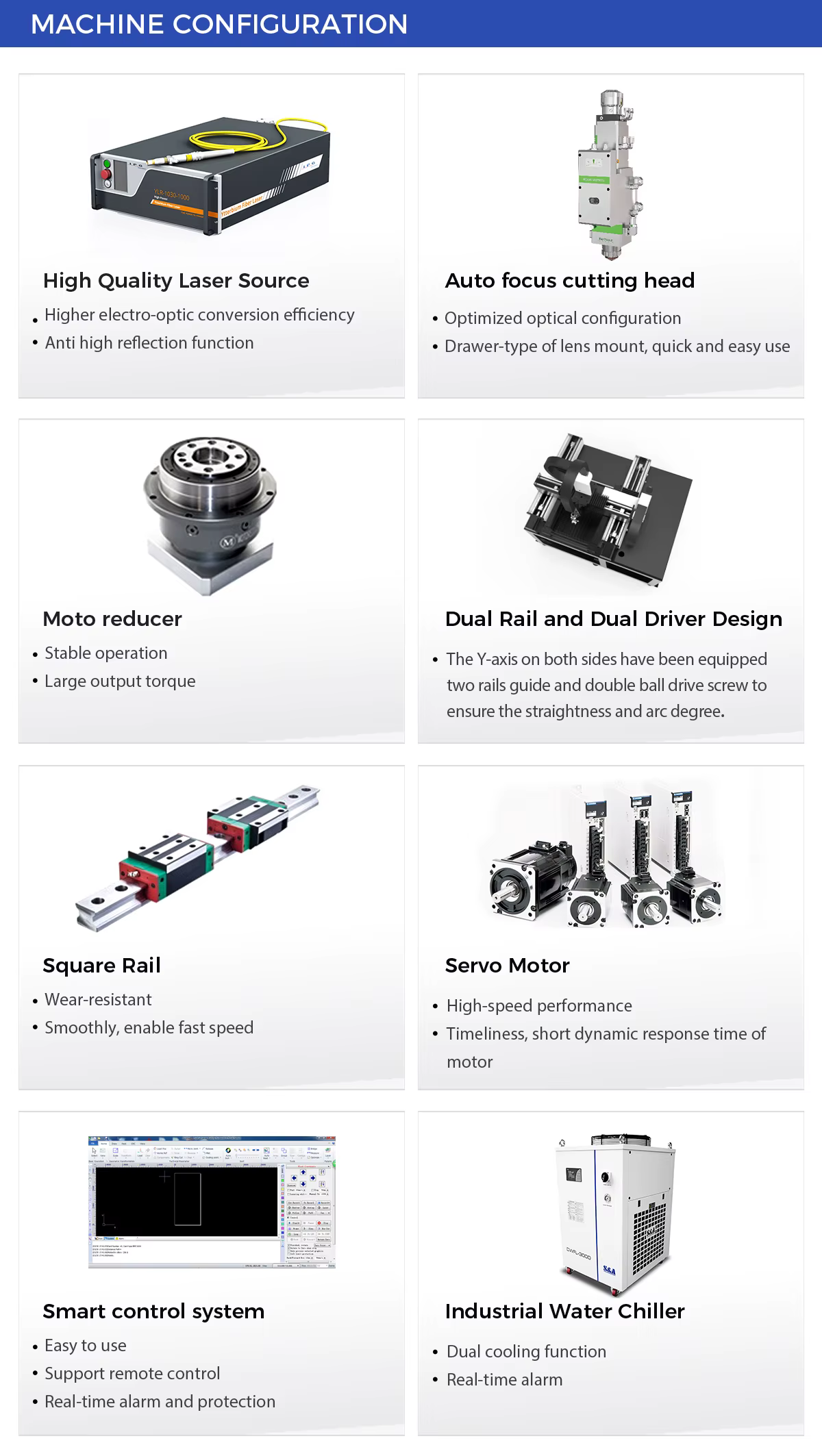 Key selling points include high accuracy, high efficiency for fast cutting, and ease of operation for users of all levels.