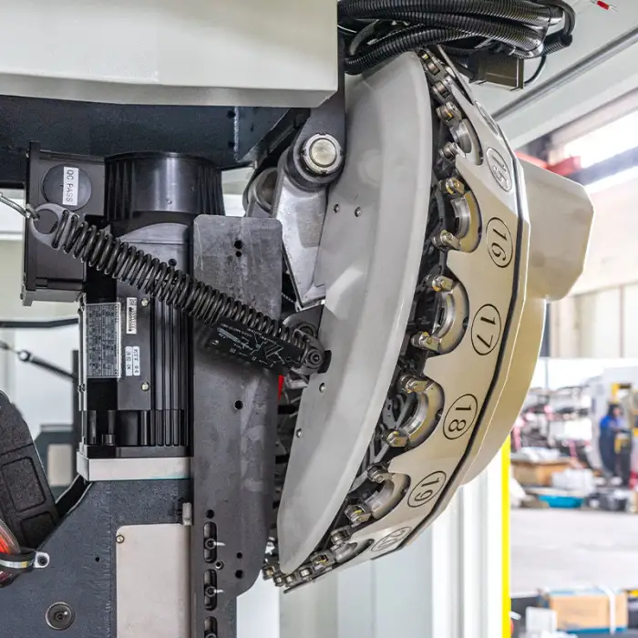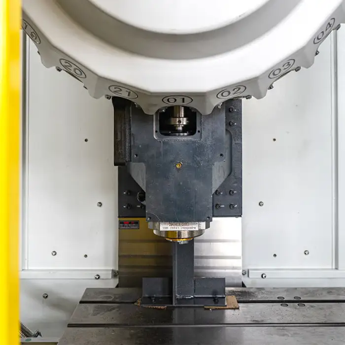 The tool magazine capacity of this machine is 21 tools, allowing for quick tool changes during operations.