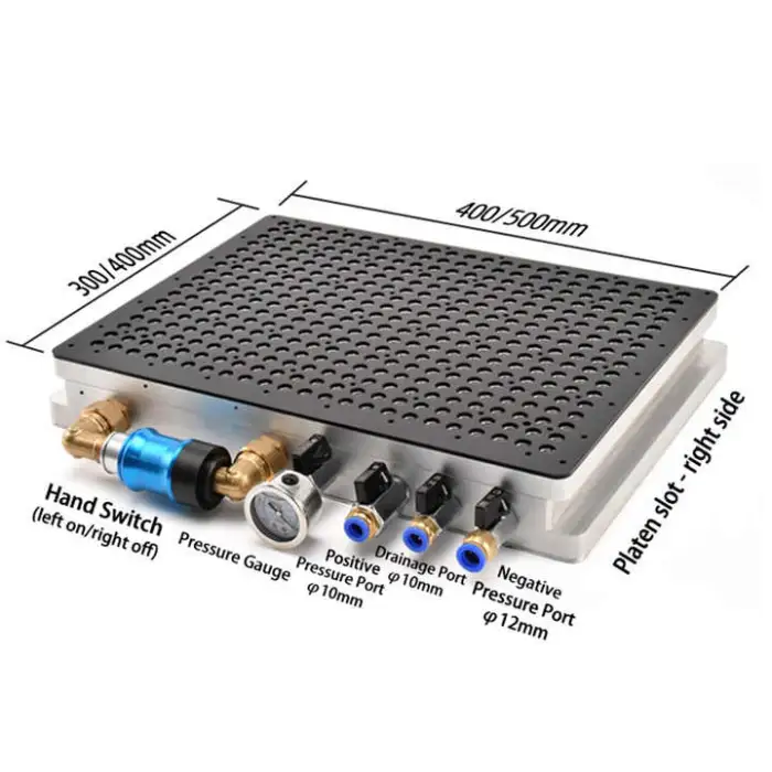 The CNC Vacuum Chuck can accommodate workpieces up to 300mm x 400mm.