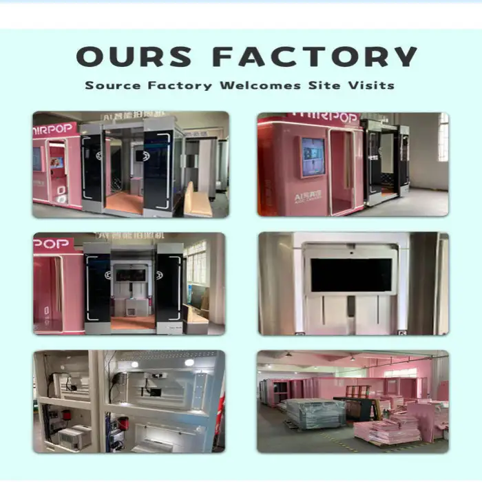 The photo booth is designed for indoor use and is perfect for entertainment venues, amusement parks, shopping malls, game rooms, and social events.