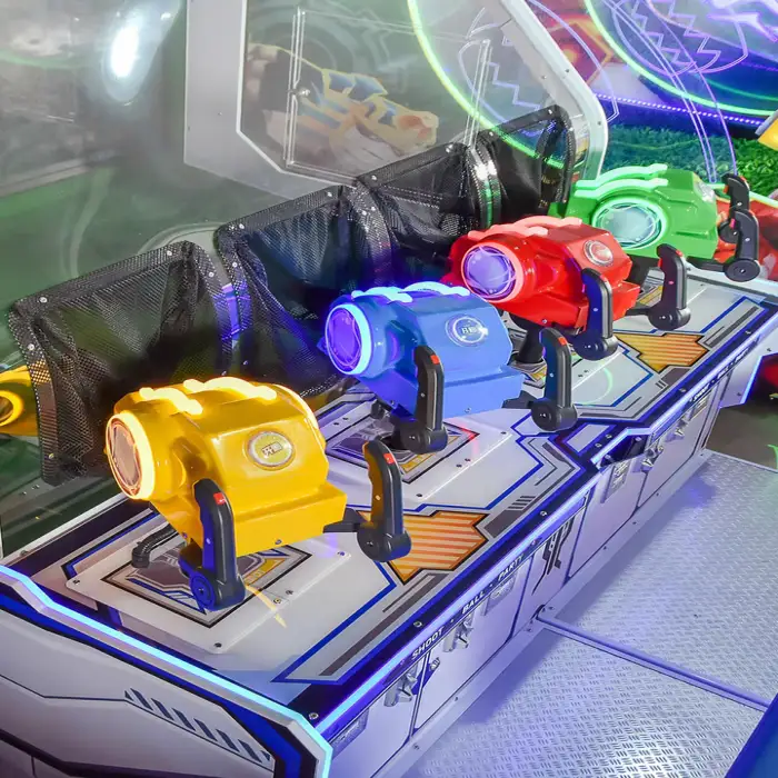 The game features exciting water shooting action and bright flashing lights, creating a captivating gaming experience.
