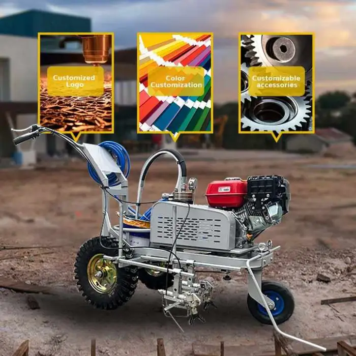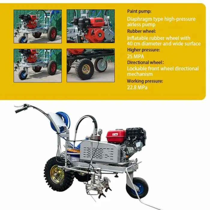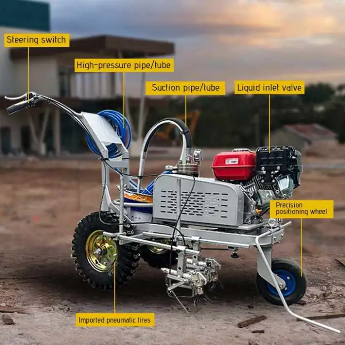 This machine is suitable for city road edge line marking, parking space marking, school and playground markings, warehouse and factory floor markings, and sports field line marking.