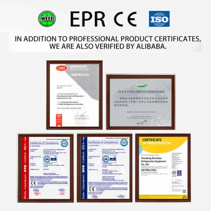 The cold storage room features high-quality compressors from Bitzer and Hanbell, known for their reliability and efficiency.