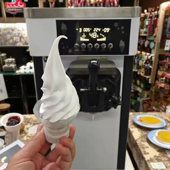 This machine makes soft serve ice cream, perfect for cones and sundaes.