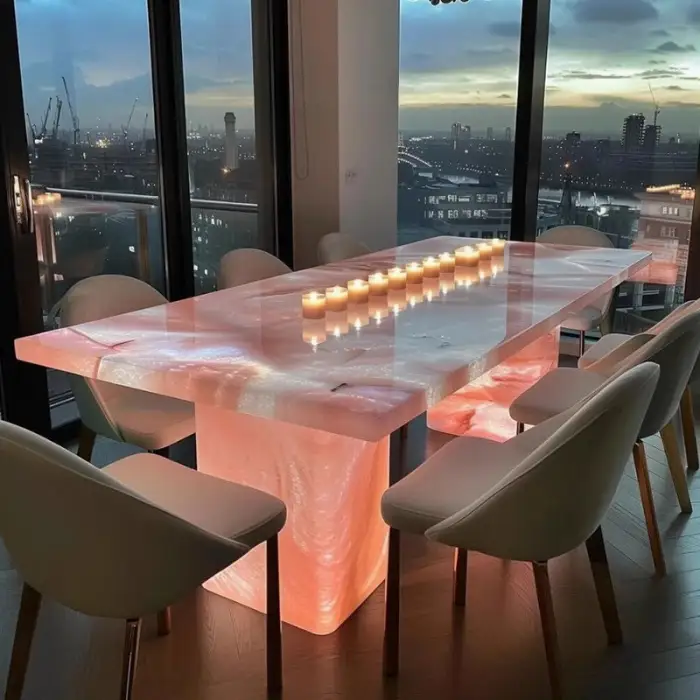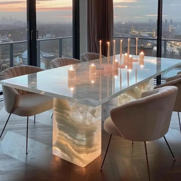 The Colorful Dining Table Set is crafted from real marble stone, ensuring both luxury and durability.