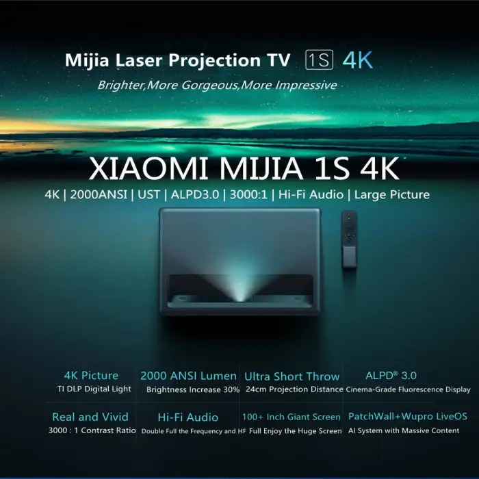 The projector has a contrast ratio of 3000:1, which helps deliver deeper blacks and better image depth compared with lower-contrast projectors.