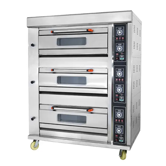 Gas heating provides quick and efficient baking, ensuring uniform baking results for perfect bread and pastries.