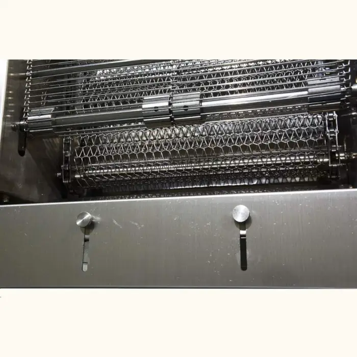 The automatic operation and continuous conveyor system streamline the frying process, allowing for high efficiency and consistent results.