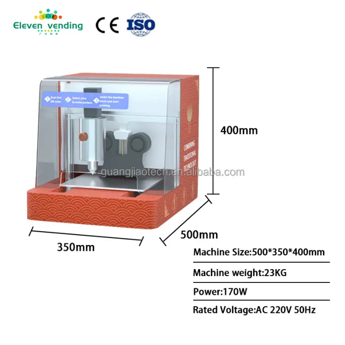 The Commercial Creative Sugar Art Vending Machine requires 170W of power to operate effectively.
