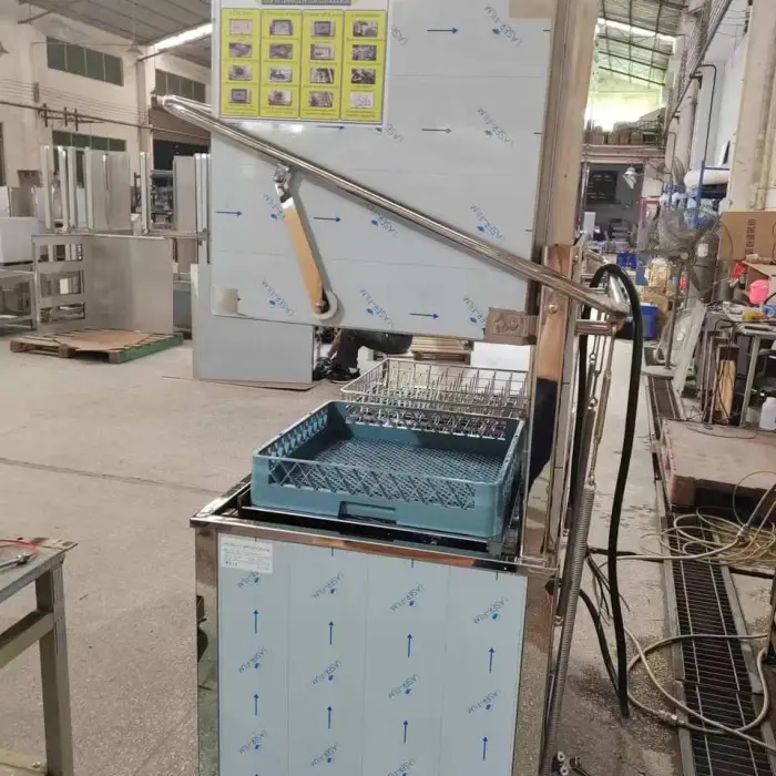 This dishwasher is ideal for restaurants, cafeterias, hotels, catering services, and food trucks.
