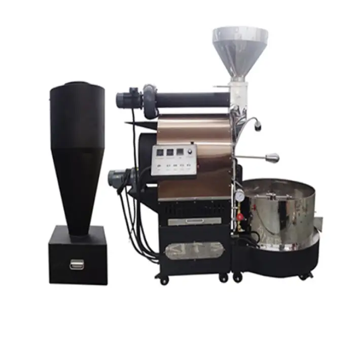 The machine uses electric heat to roast the beans evenly. You can control the temperature and time for precise roasting.