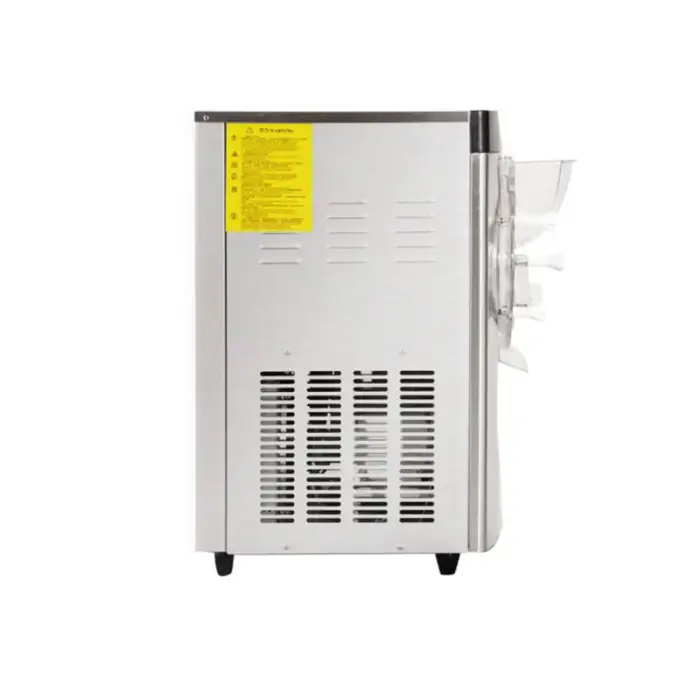 The Commercial Equipment Machinery Hard Ice Cream Maker is air-cooled, but a water-cooled option is also available.