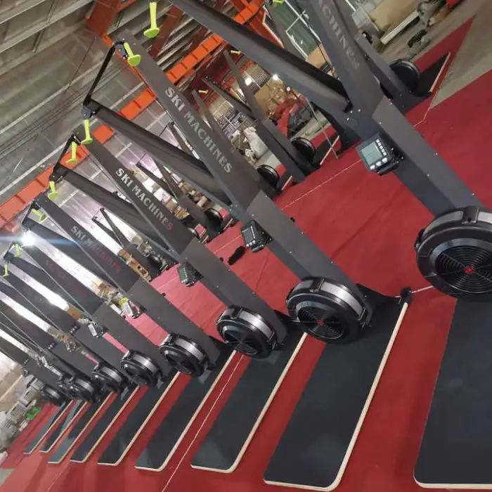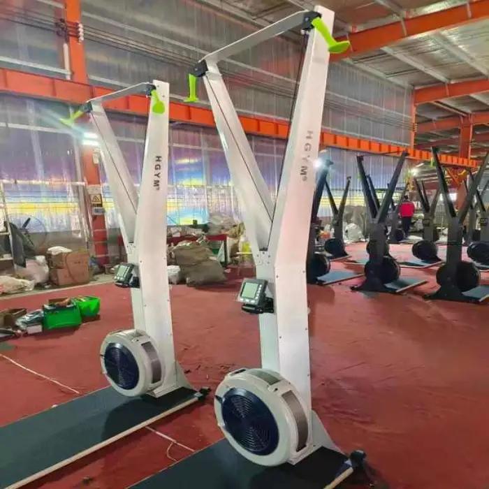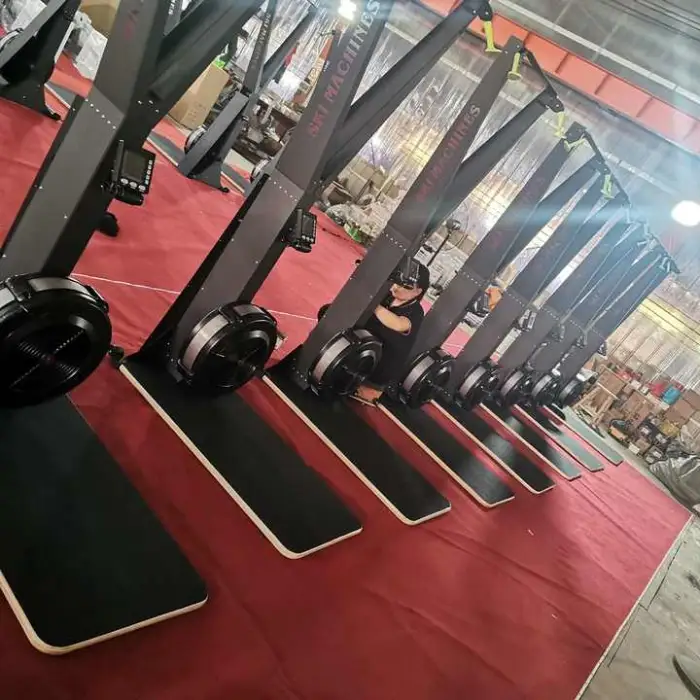 This machine helps strengthen hip muscles while improving cardio fitness through wind resistance, providing an effective full-body workout.