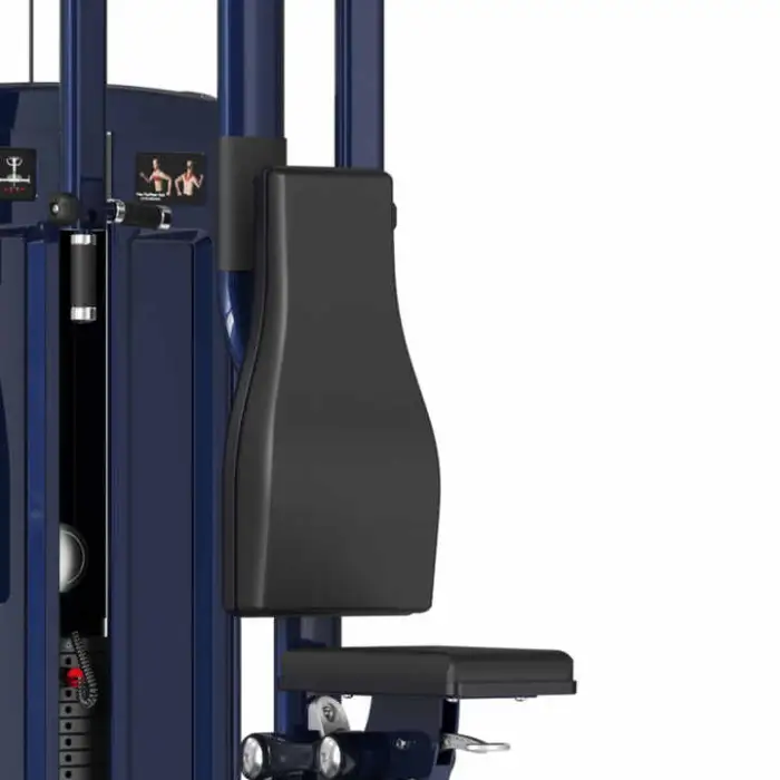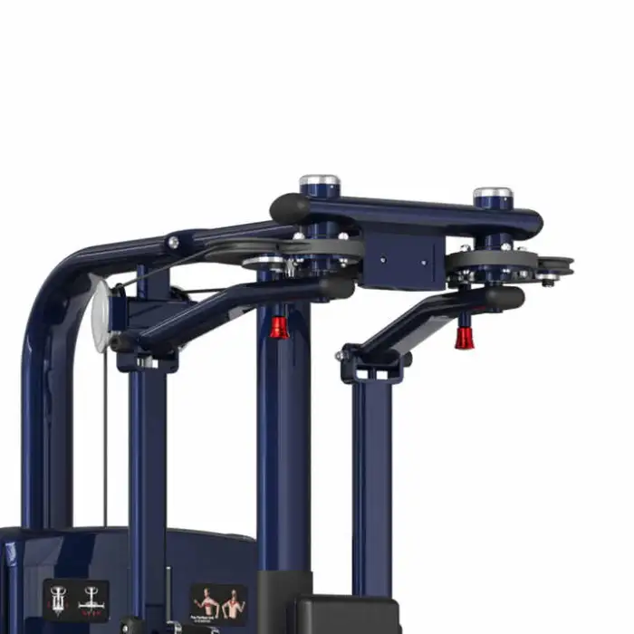 This multi-functional gym machine is designed for a variety of strength training exercises, including pec flys, rear deltoid workouts, and more, making it versatile for different fitness routines.