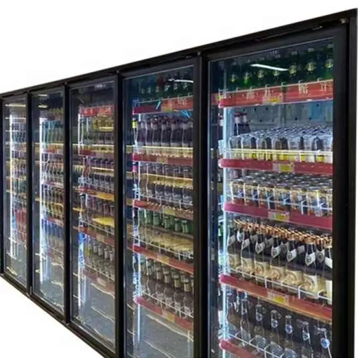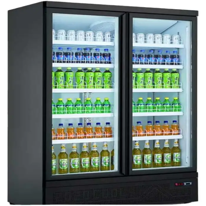 The unit features a sturdy glass door for product visibility. Specifics such as tempered glass, double-pane insulated glass, heated glass, or anti-fog coatings depend on configuration—please confirm the exact door specification when ordering.