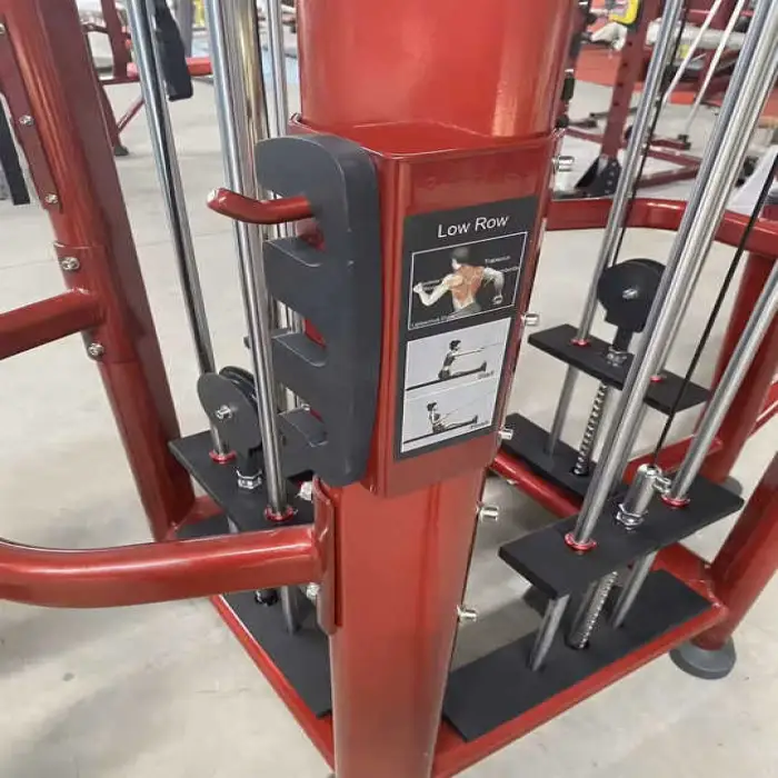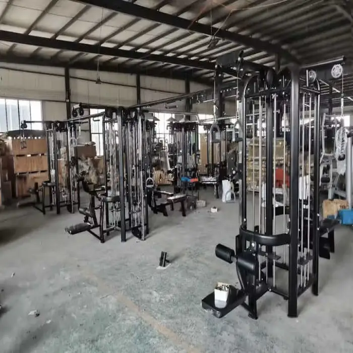 The equipment allows for a wide range of exercises including weightlifting, strength training, and functional workouts. Specific stations may include options for bench presses, cable exercises, and leg workouts.