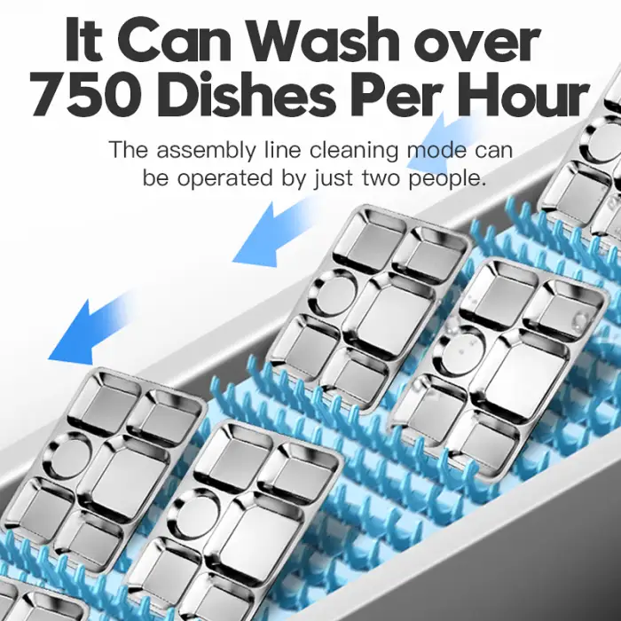 With its high efficiency and automatic operation, the dishwasher can clean dishes quickly, allowing staff to focus on other kitchen tasks and reducing wait times.
