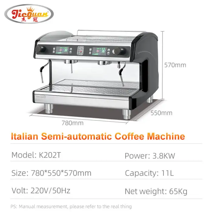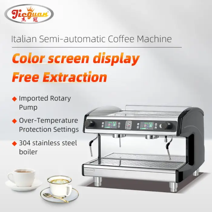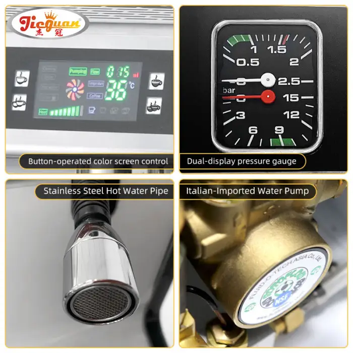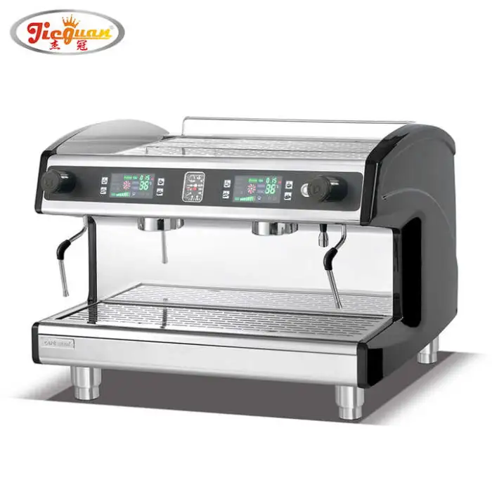The two-head display screen provides clear visibility for monitoring brewing processes and settings.