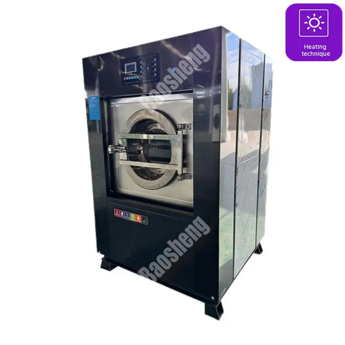 The Commercial Laundry Washer and Dryer Machine uses steam heat for effective cleaning.