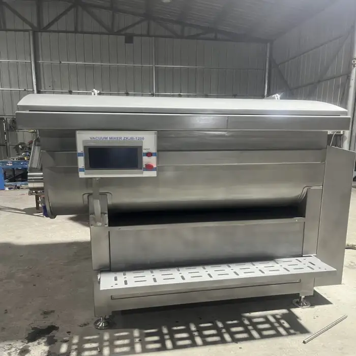 The Commercial Meat Mixing Machine has a hopper volume that ranges from 150 to 1200 liters, making it suitable for large batches of meat.