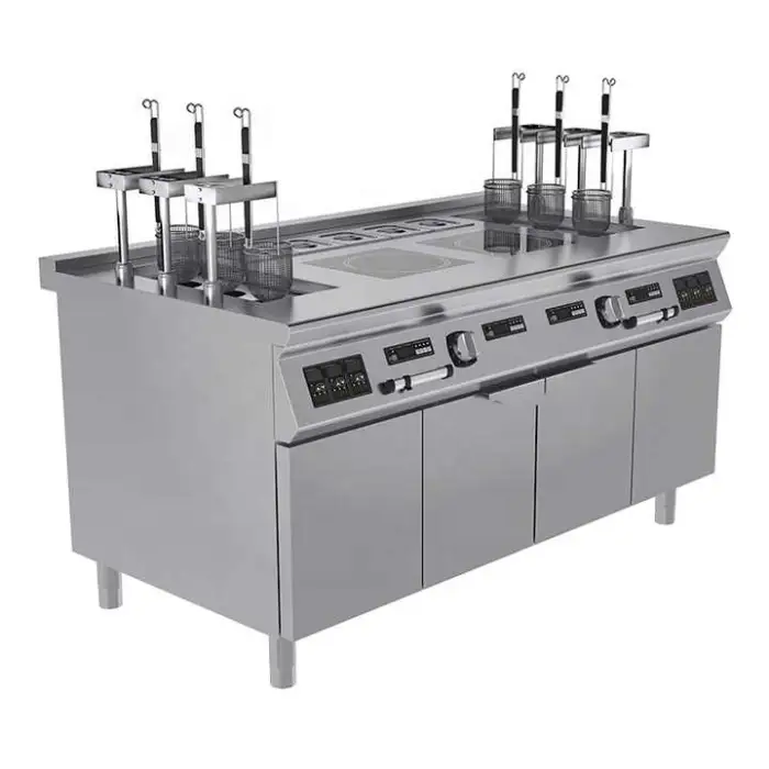 The cooking range features easy-to-clean surfaces, allowing for quick maintenance and hygiene in busy kitchen environments.