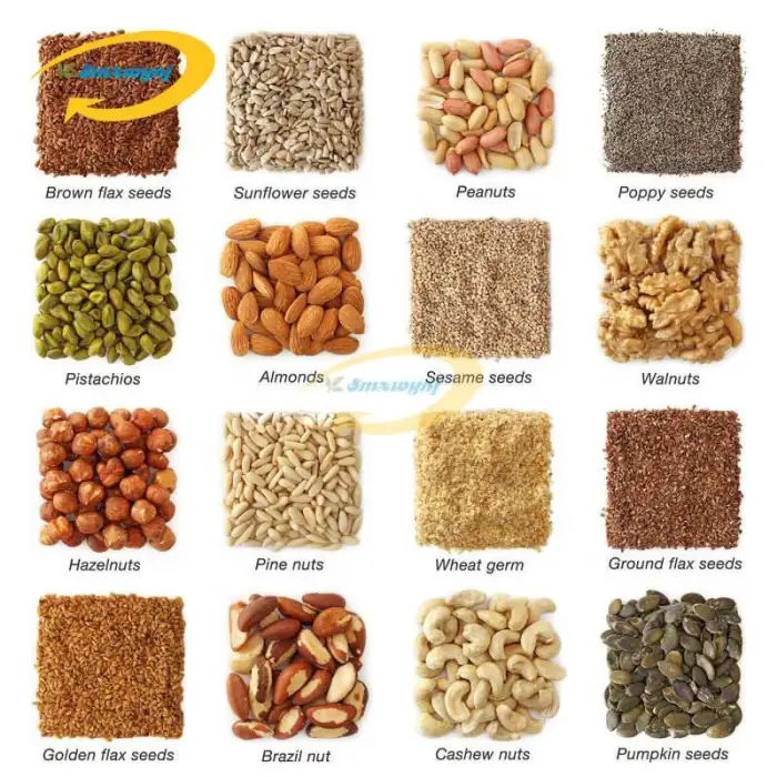 The machine can process various seeds including black seeds, peanuts, rapeseed, soybean, and more.