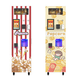 The machine automatically dispenses fresh popcorn with just a touch of a button, providing a quick and convenient service for customers.