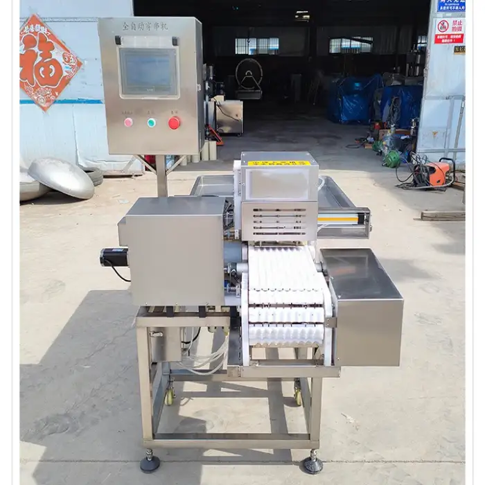The machine has a rated production capacity of up to 4,000 pieces per hour. Actual output depends on meat size, skewer type, operator setup and processing speed.