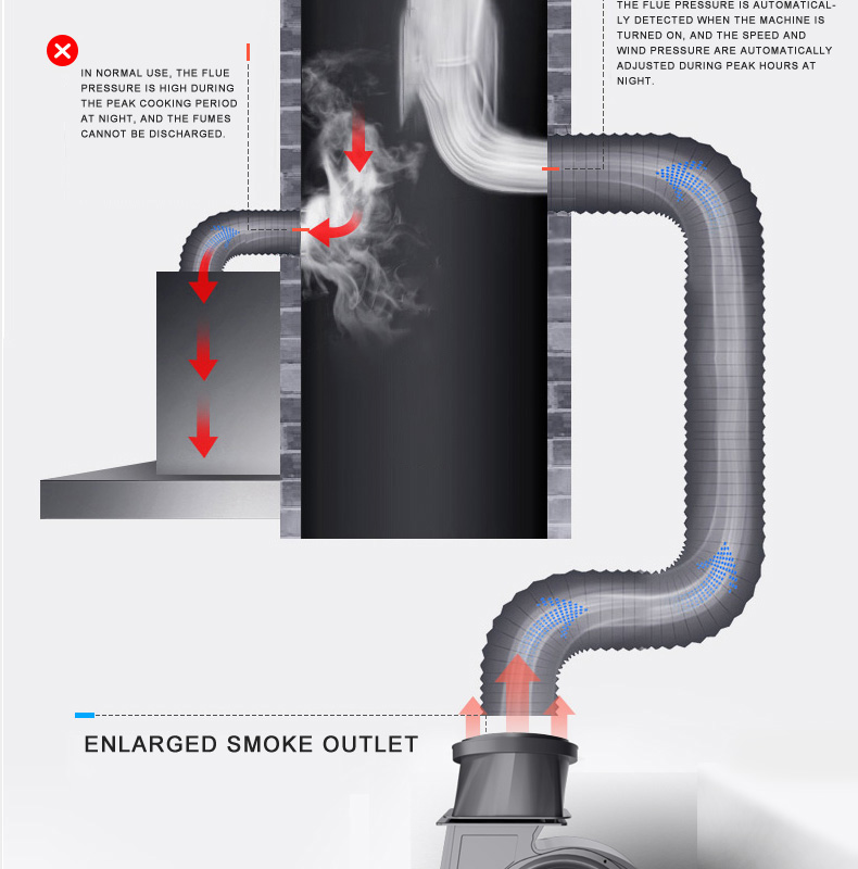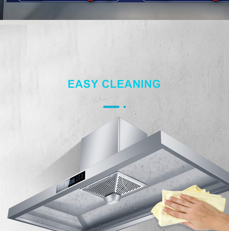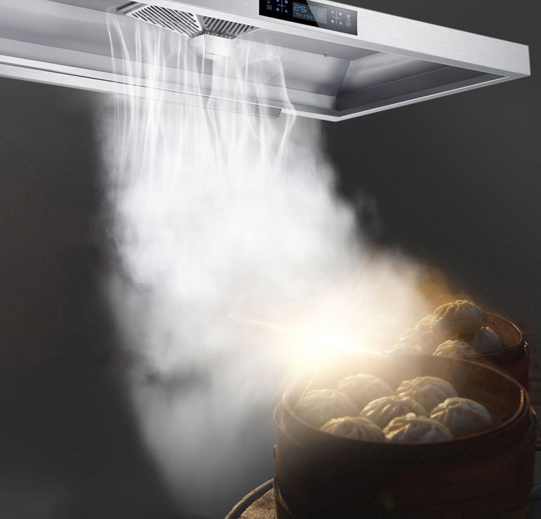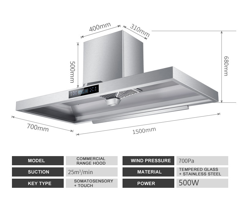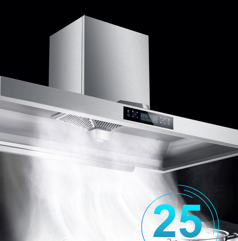 The range hood provides a high airflow of approximately 15–17 m³/min, designed to quickly remove smoke, grease and cooking odors.
