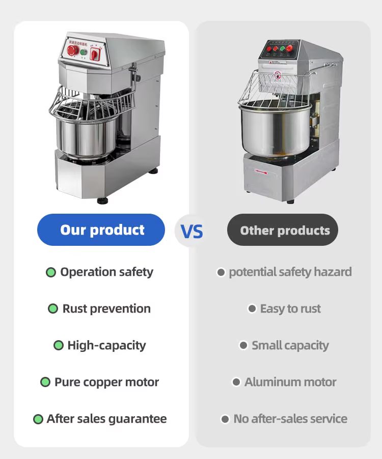 The Commercial Restaurant Equipment Two-speed Double Acting Spiral Dough Mixer can handle up to 10kg of dough.