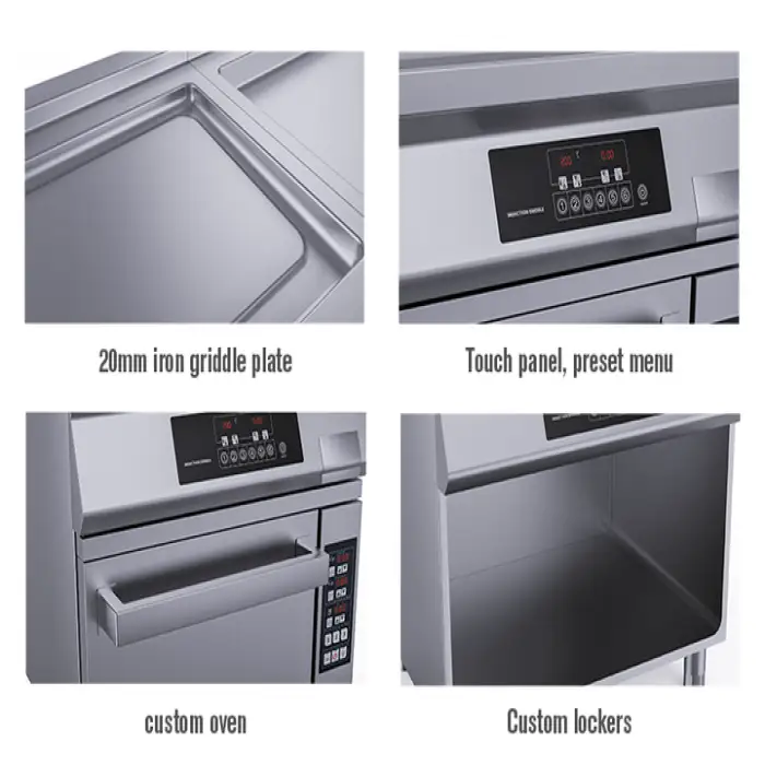 The griddle includes overheat protection with auto shut-off. Standard safe-use practices (proper ventilation, not storing flammable items in the open cabinet, trained operator use) should also be followed. For site-specific safety and compliance, follow local codes and manufacturer guidance.