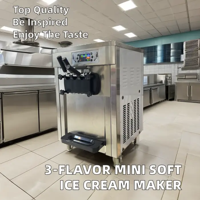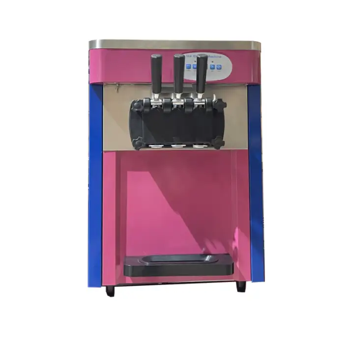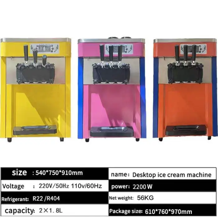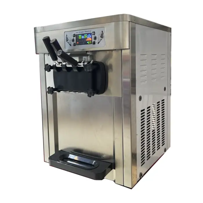 The machine can produce three different flavors of soft ice cream, along with yogurt and fruit mixes.