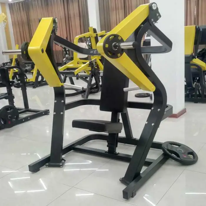 The chest press gym machine is made of durable steel.