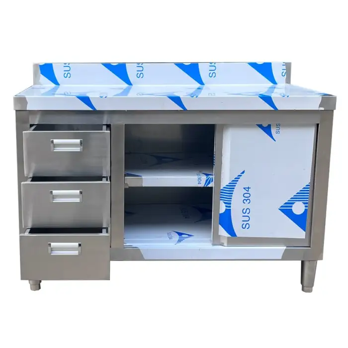 While designed for commercial use, the cabinet can also be used in a home kitchen if you need ample storage and a sturdy workbench.
