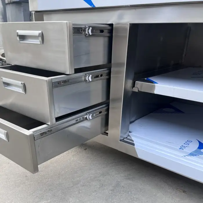 The cabinet is made from high-quality stainless steel, specifically Stainless Steel 201 or 304.