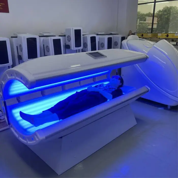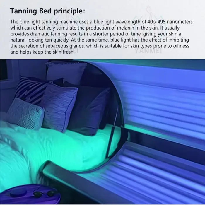 The Commercial UV Tanning Sunbed Solarium Tanning Machine (Brand: Yanmeim, Model: LT-104) is a horizontal tanning bed designed for both home and commercial use. It is advertised to provide UV tanning, skin rejuvenation and wrinkle-smoothing effects while treating the face, neck and body.