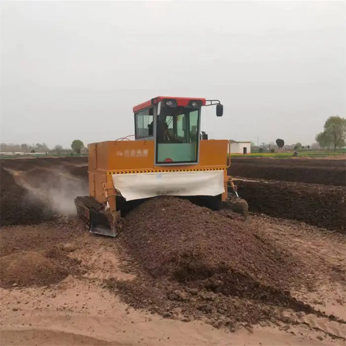 The machine is suitable for turning organic waste into compost, including kitchen scraps, yard waste, and agricultural residues.